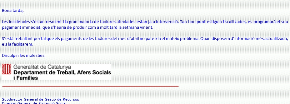 Després de les  gestions realitzades per UPIMIR amb la  Subdirecció Gral. De Gestió de Recursos del Departament de Treball, afers socials i famílies, ens comuniquen que ja han començat a realitzar els pagaments de la nomina d’aquest mes.